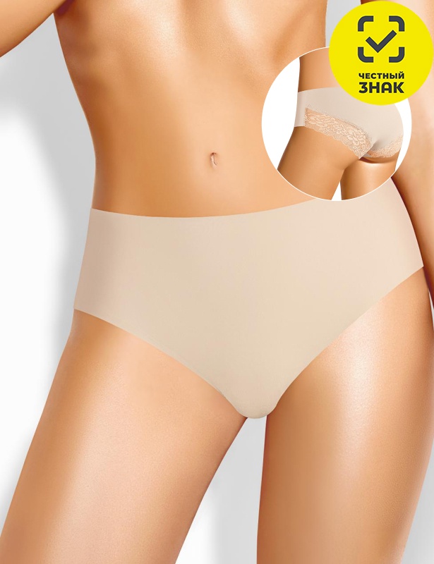 Трусы слипы женские из полиамида с эластаном. По спинке кружево. Обработка краев - подклееный край. Хлопковая ластовица.
