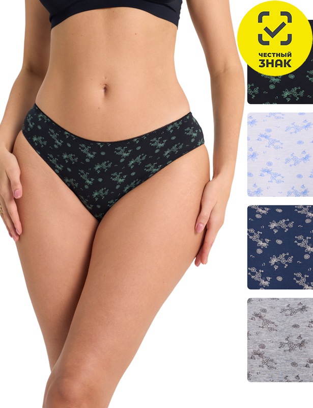 Трусы слипы женские из хлопкового трикотажа с добавлением эластана. Трусы упакованы в картонную бирку-хедер, без коробки.