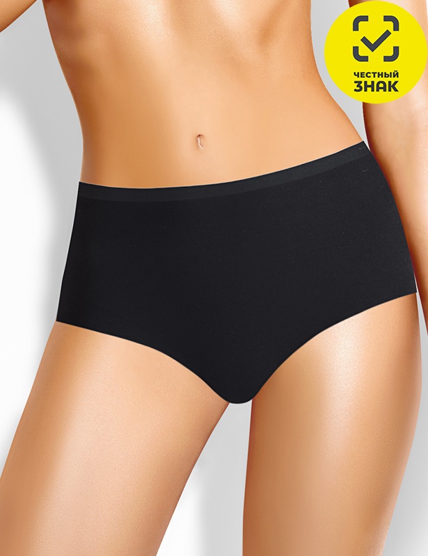 Трусы макси женские из эластичного вискозного полотна. Обработка по талии - жаккардовая резинка, по ноге - открытый срез.