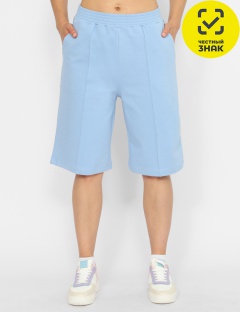 Женские шорты из футера с эластичным поясом, боковыми карманами, со стрелками-строчками, длиной до колен.