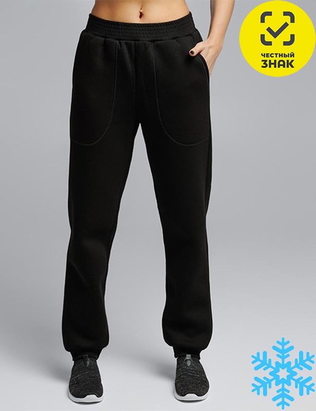 Женские брюки из футера 3-нитки с начесом, на резинке на поясе и по нижним срезам брюк, карманы в боковых швах.