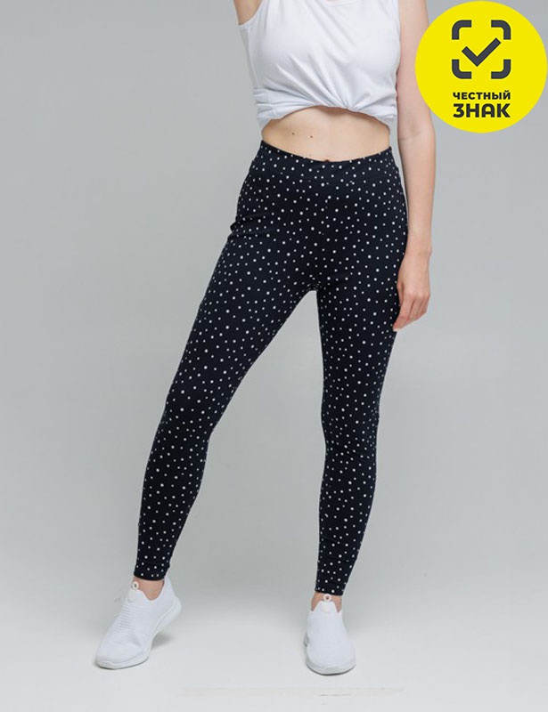 Классические, облегающие, длиной до щиколотки. Пояс цельнокроенный. Набивка: мелкие звездочки.