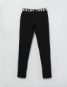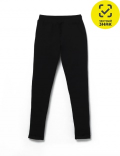 Брюки зауженные к низу, с подворотом. Пояс отрезной из кашкорсе с эластаном. В поясе обработана кулиска, кругловязаный шнур, с застроченными концами, вставлен в петли. Карманы наклонные, полукруглые. По входу в карман притачная обтачка из кашкорсе с эластаном, с отстрочкой по шву притачивания. На поясе по спинке выполнена шелкография.