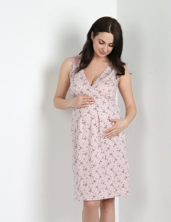 Сорочка для беременных и кормящих женщин. Модель с кружевными вставками в области плеч, сборками на объем груди и складками на объем живота. Модель хорошо сочетается с халатом "Мамочка-6".