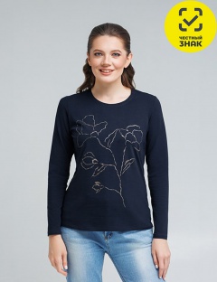 Джемпер женский прямого кроя, с длинными втачными рукавами, округлая горловина, на полочке печать.