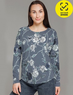 Теплый женский джемпер из нежного набивного полотна, цельнокроеные рукава "летучая мышь" длиной 3/4, округлый вырез горловины.