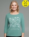 Джемпер женский полуприталенного силуэта, с втачными рукавами 3/4, округлая горловина окантована, на полочке выполнена печать.