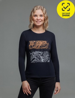 Джемпер женский прямого кроя, с длинными втачными рукавами, округлая горловина, на полочке печать.
