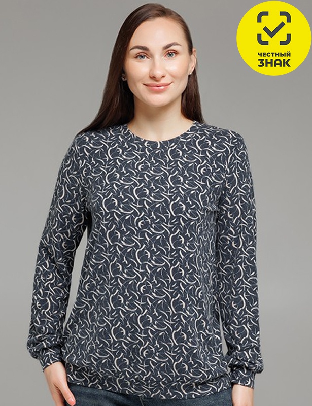 Джемпер из мягкой теплой вискозы и набивного полотна, с длинными втачными рукавами с манжетами, округлый вырез горловины, свободный крой.