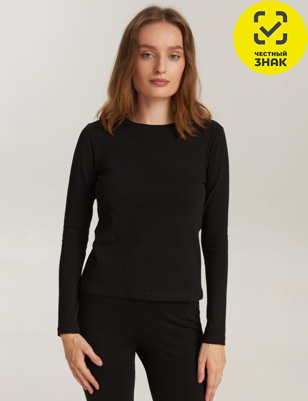 Производитель: ТМ Bumbacel Артикул: W48028K_0303 Лонгслив женский (Черный) Пол: ЖЕНСКИЙ Полотно: рибана Состав: 95% хб, 5% эл Возраст: взросл