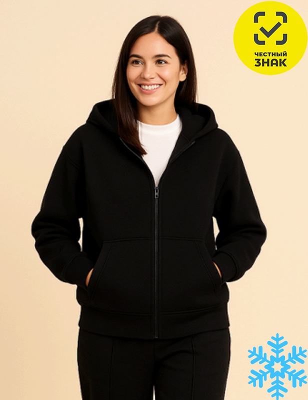 Толстовка с капюшоном на молнии. Модель выполнена из мягкого трикотажа с начёсом, сохраняющего тепло. Классический крой с прорезными карманами-кенгуру и эластичными манжетами обеспечивает комфорт в повседневной носке.