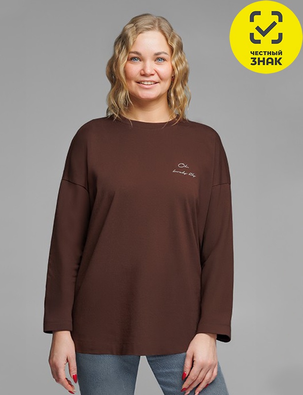 Джемпер женский свободного силуэта, с длинными втачными рукавами, с округлой горловиной, на полочке и на спинке выполнена печать.
