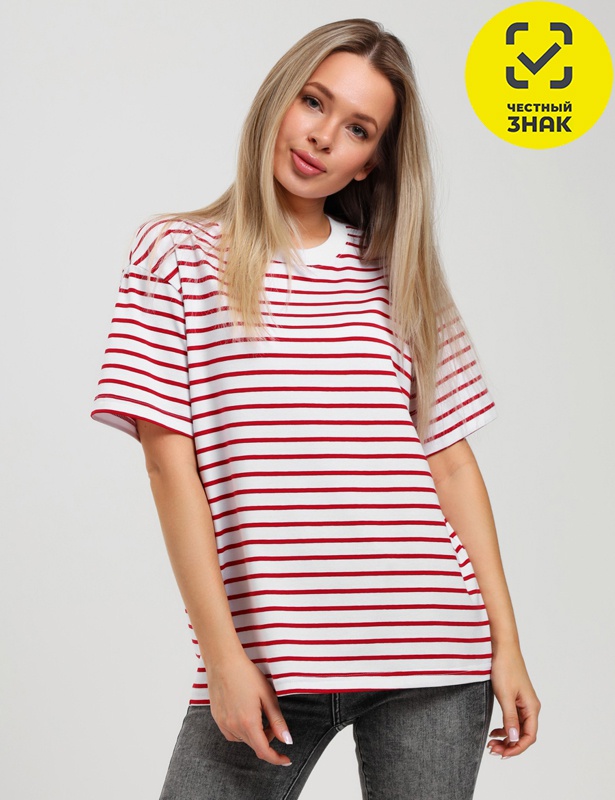 Футболка молодежная из трикотажного полотна «кулирка» с лайкрой и набивным рисунком «полоса». Модель выполнена в классическом покрое.