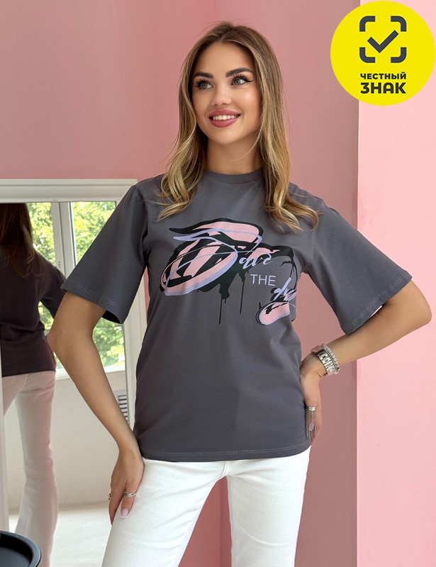 Производитель: ТМ Chilleasy Артикул: 420018C-29 Футболка женская (Антрацит) Пол: ЖЕНСКИЙ Полотно: кулирная гладь Состав: хлопок 100% Возраст: взросл