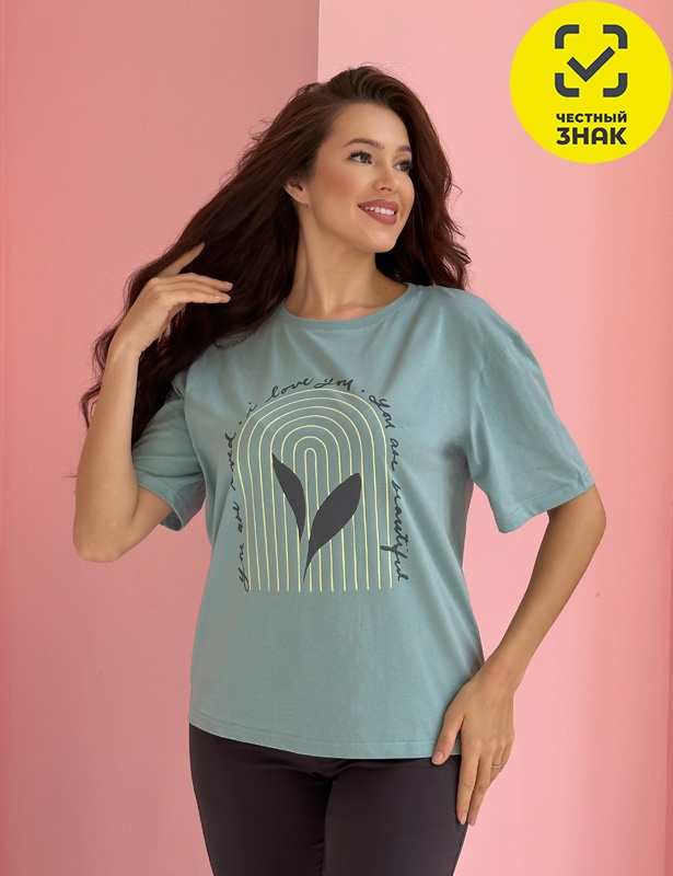 Производитель: ТМ Chilleasy Артикул: 420019C-19 Футболка женская (Полынь) Пол: ЖЕНСКИЙ Полотно: кулирная гладь Состав: хлопок 100% Возраст: взросл