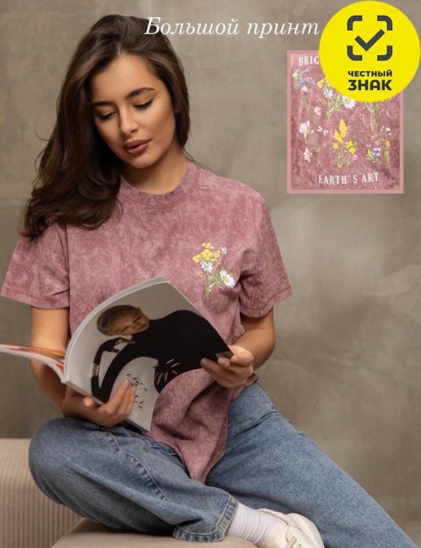 Базовая женская футболка из 100% хлопка с эффектом варенки, умеренного обьема, О-образной горловиной и коротким рукавом. По горловине, рукаву и низу изделия - декоративная строчка. Спереди и сзади нанесен принт "Желтые маки".