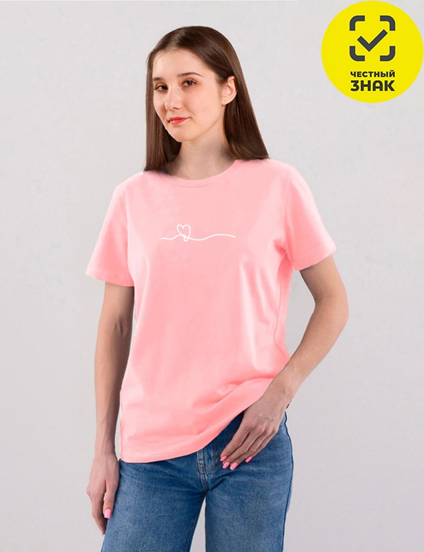 Женская футболка свободного кроя с короткими втачными рукавами, округлой горловиной и печатью на полочке — это классическая модель, подходящая для любого времени года и стиля одежды. Печать на изделии может отличаться от фотографии на сайте.