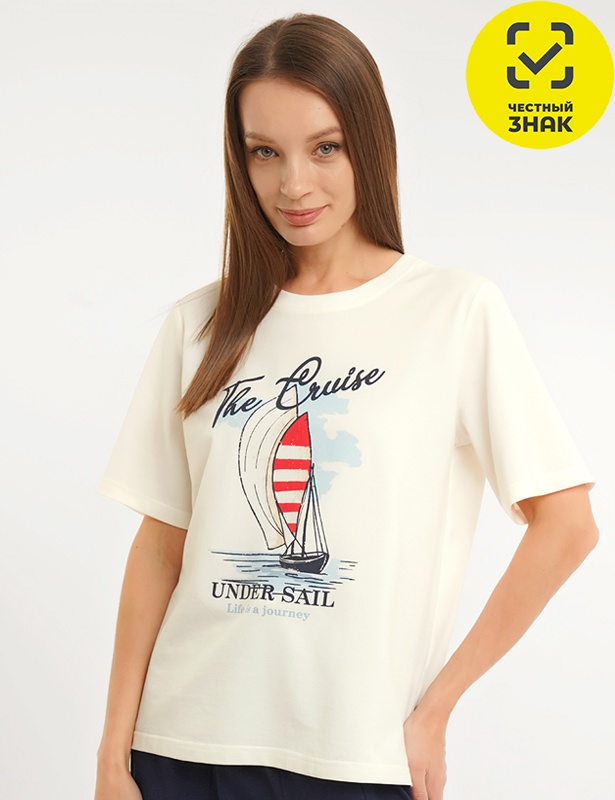 Производитель: ТМ Clever Артикул: CLEVER LF26-1234/5 Футболка жен. Круиз (молочный) Пол: ЖЕНСКИЙ Полотно: кулирная гладь Состав: 56% хб, 44% пэ Возраст: взросл