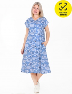 Удобный, свободный халат со складкой на спине. Цельнокроенный короткий рукав, V-образная горловина, два боковых кармана, на пуговицах. Модель актуальна для женщин с пышными формами, ценящими свободу движений.