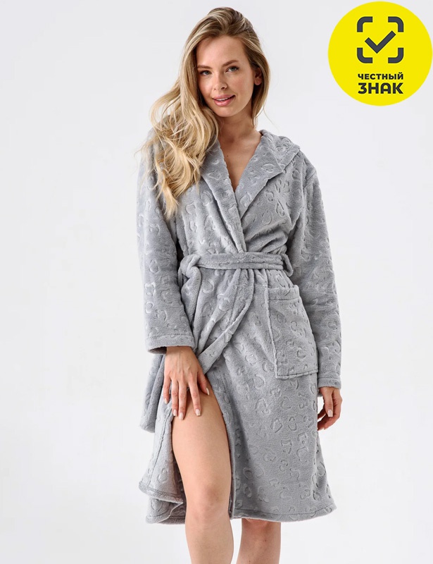 Производитель: ТМ Оптима Трикотаж Артикул: 2347-Эф Халат женский (графит) Пол: ЖЕНСКИЙ Полотно: велсофт Состав: полиэстер 100% Возраст: взросл