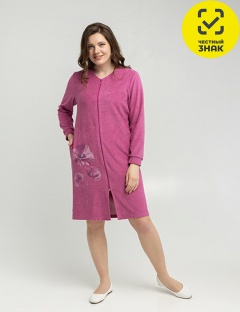Халат женский махровый, с длинными втачными рукавами, на центральной застежке на молнию, карманы по бокам, полочка декорирована вышивкой.