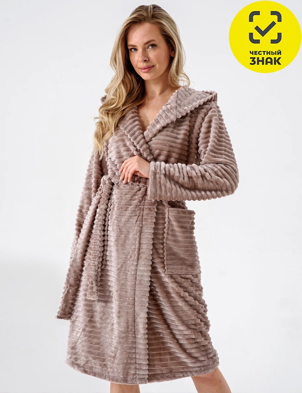Производитель: ТМ Оптима Трикотаж Артикул: 2346-Эф Халат женский "Волна" (кофейный) Пол: ЖЕНСКИЙ Полотно: велсофт Состав: полиэстер 100% Возраст: взросл
