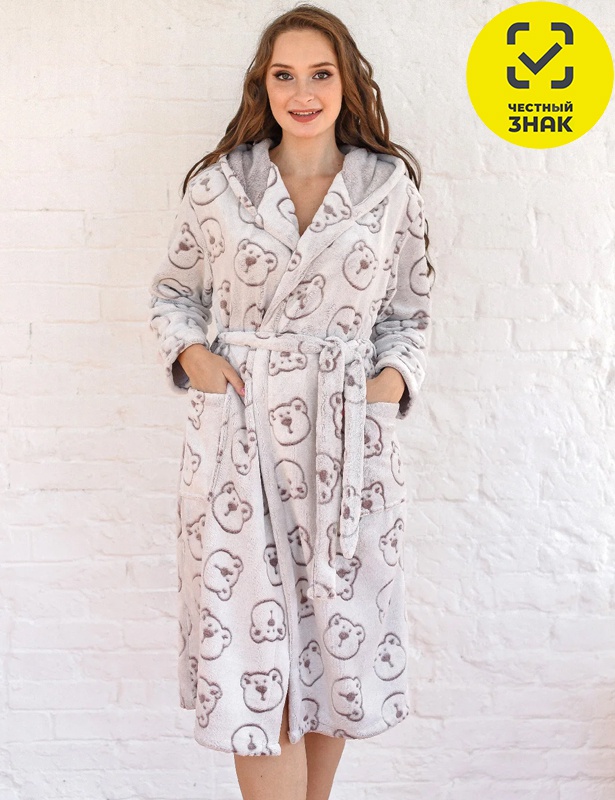 Производитель: ТМ Оптима Трикотаж Артикул: 1782-Эф Халат женский "Медвежонок" (кофейный) Пол: ЖЕНСКИЙ Полотно: велсофт Состав: полиэстер 100% Возраст: взросл