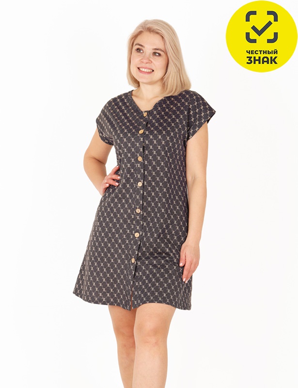 Легкий домашний халат на пуговицах из набивного хлопка, с короткими рукавами.