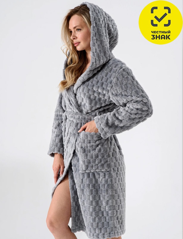 Производитель: ТМ Оптима Трикотаж Артикул: 2347-Эф Халат женский "Пушистик" (серый) Пол: ЖЕНСКИЙ Полотно: велсофт Состав: полиэстер 100% Возраст: взросл