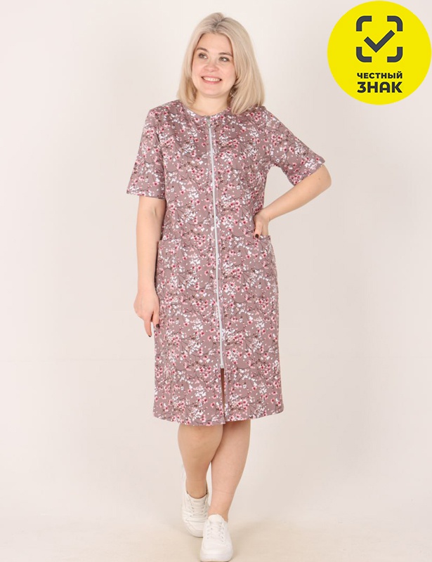Легкий домашний халат из натурального хлопкового трикотажа — мягкий и приятный на ощупь, идеально создаёт атмосферу уюта и комфорта . Стильная модель прямого силуэта, с втачными рукавами длиной ?, легко надевается благодаря центральной застёжке на молнию. Удобные карманы делают его особенно практичным и уютным для повседневных домашних образов.