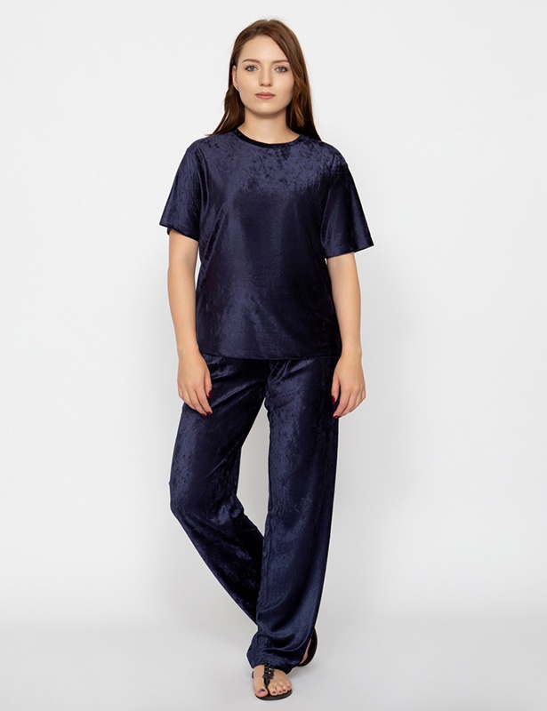 Идеальный вариант для отдыха, поездок и путешествий, для дома, улицы и дачи. Вы всегда будете выглядеть стильно и привлекательно! Костюм изготовлен из высококачественного бамбукового велюра. Футболка свободного силуэта с коротким рукавом, брюки прямые на мягкой резинке. Ткань переливается и меняет оттенок в зависимости от освещения.