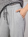 Молодёжный костюм из кулирки (трикотажное полотно) в двух вариантах: гладкокрашеный и с набивным рисунком, в единой цветовой гамме. В комплект входят футболка и брюки. Футболка классического кроя из гладкокрашеного полотна, с короткими цельнокроеными рукавами, овальной горловиной, обработанной окантовкой из основного материала, и принтом на полочке, выполненным методом шелкографии. Брюки свободного кроя из полотна с набивным рисунком, с карманами, узким кантом из отделочного материала в боковых швах, притачным поясом с эластичной тесьмой внутри и шнурком, продетым через две петли в центре пояса.