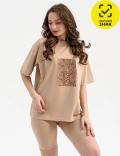 Производитель: ТМ Оптима Трикотаж Артикул: 2210-К Костюм женский Оверсайз (бежевый (змея)) Пол: ЖЕНСКИЙ Полотно: кулирная гладь Состав: 94% хб, 6% лк Возраст: взросл