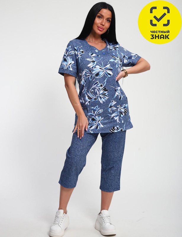 Производитель: ТМ Плиона Артикул: 01070 Костюм с бриджами (Синий) Пол: ЖЕНСКИЙ Полотно: кулирная гладь Состав: хлопок 100% Возраст: взросл