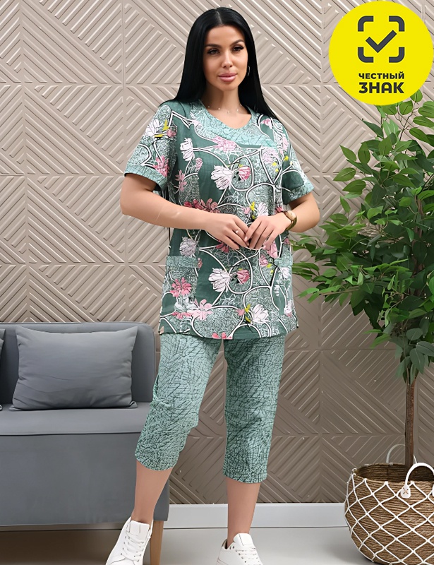 Производитель: ТМ Плиона Артикул: 01070 Костюм с бриджами (Хаки) Пол: ЖЕНСКИЙ Полотно: кулирная гладь Состав: хлопок 100% Возраст: взросл