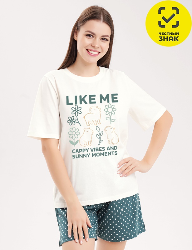 Артикул: CLE LP26-1225/1 Набор одежды жен. Капибара (молочный/т.зелёный)
