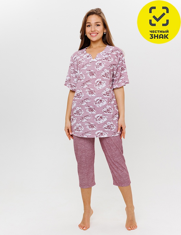 Производитель: ТМ Моделлини Артикул: 1948 Пижама с бриджами Пол: ЖЕНСКИЙ Полотно: кулирная гладь Состав: 50% хб, 50% пэ Возраст: взросл