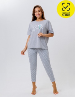 Производитель: ТМ Моделлини Артикул: 1845/1 Пижама с брюками (Серый, голубые цв) Пол: ЖЕНСКИЙ Полотно: кулирная гладь Состав: 50% хб, 50% пэ Возраст: взросл