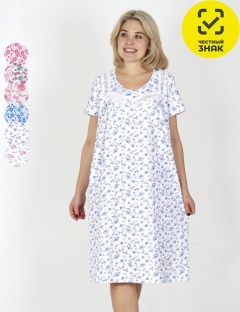 Женская сорочка из трикотажного полотна свободного кроя, с коротким рукавом, длина ниже колена.