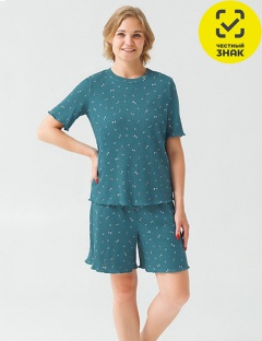 Женская пижама, состоящая из футболки и шорт, изготовлена из хлопкового набивного полотна «лапша». Футболка прямого кроя с короткими рукавами и округлым вырезом горловины. Шорты свободного кроя с эластичной резинкой на поясе. Пижама идеально подходит для отдыха и сна.