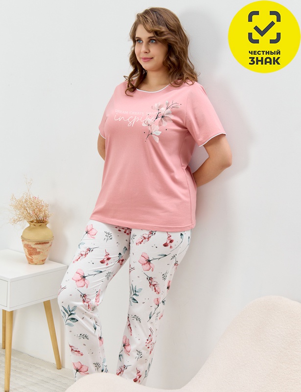 Производитель: ТМ ВиоТекс Артикул: П-502 Пижама "Узор-2" (СУХАЯ РОЗА) Пол: ЖЕНСКИЙ Полотно: кулирная гладь Состав: хлопок 100% Возраст: взросл