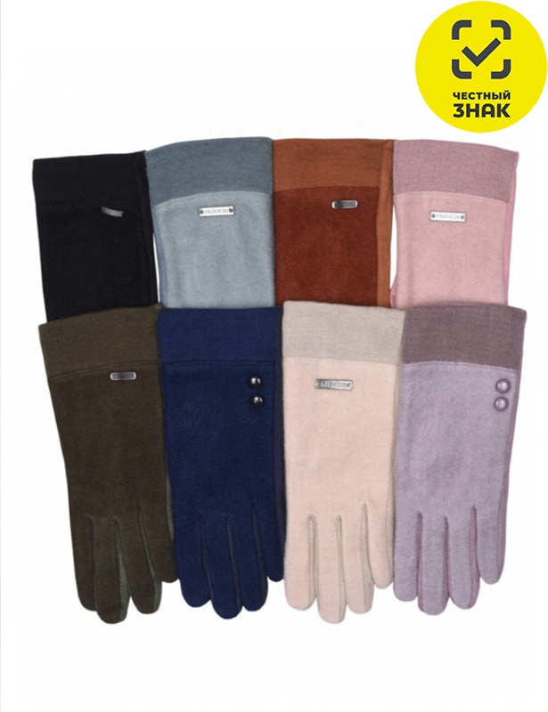 Перчатки женские сенсорные с различными декоративными нашивками.